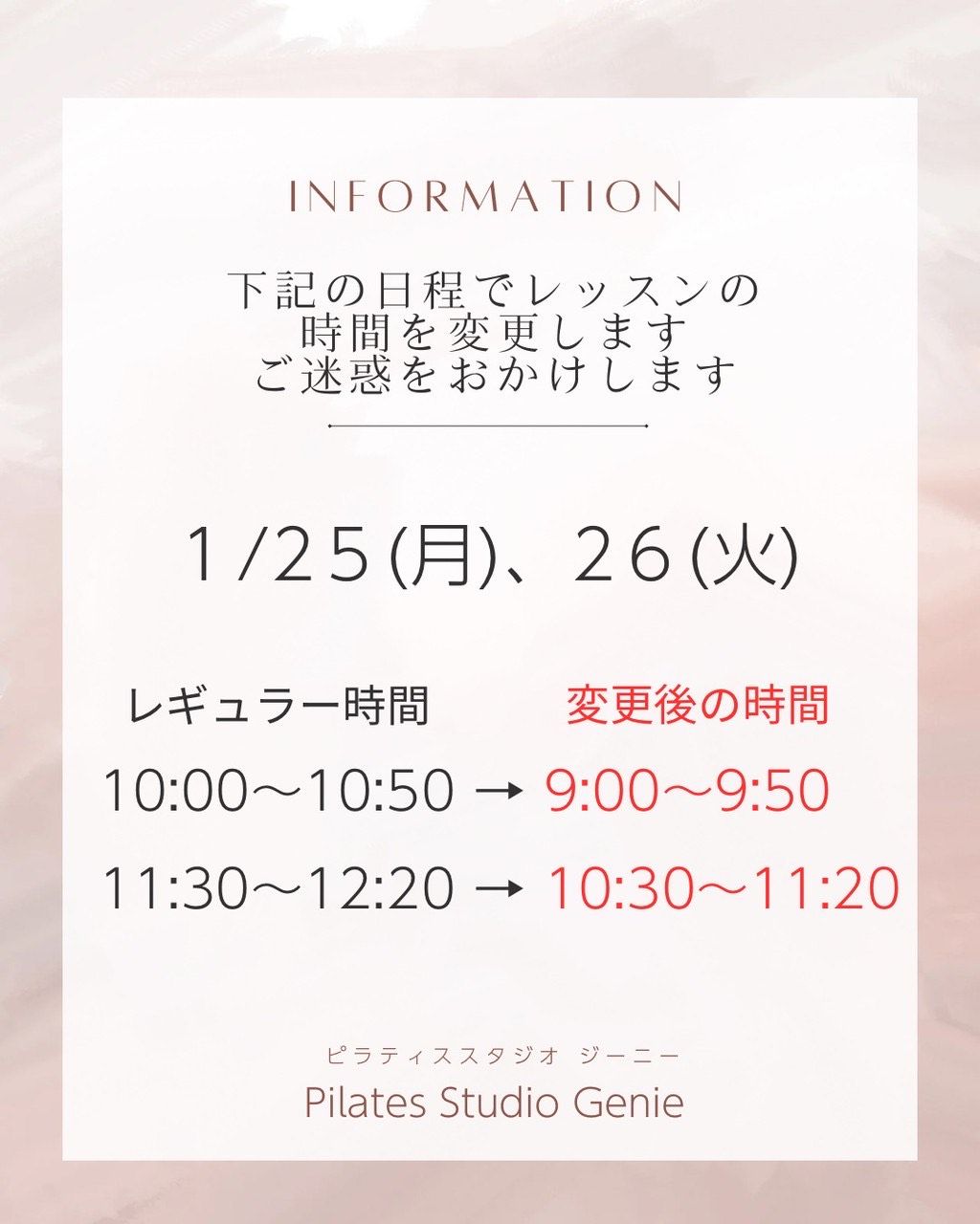 誠に勝手ながら、下記の日程のみ、グループレッスンの時間が変更になります。